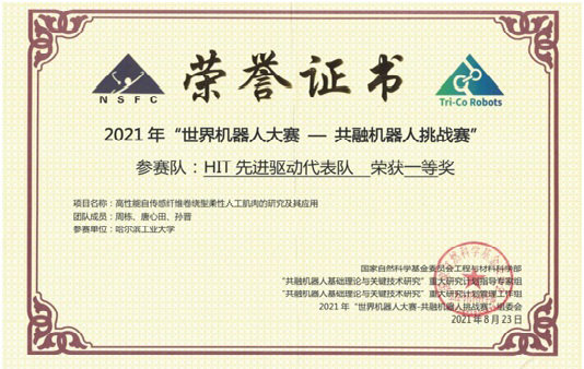日前,由国家自然科学基金委员会主办的2021年“世界机器人大赛——共融机器人挑战赛”第一阶段比赛在线上举行。来自哈尔滨工业大学、清华大学、上海交通大学、北京航空航天大学、中国科学院等高校和研究所的26支队伍展开了激烈的角逐。最终,机电学院刘英想教授团队周栋、唐心田和孙晋3名博士组队的参赛作品“高性能自传感纤维卷绕型柔性人工肌肉的研究及应用”斩获第一名。周栋代表参赛队员在开幕仪式上宣誓。