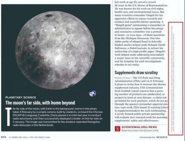 (“龙江二号”拍摄的地月合影登上《科学》(Science)杂志)