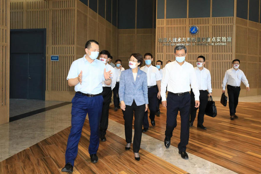 在机器人技术与系统国家重点实验室,曹淑敏一行认真听取了实验室创新成果介绍,对实验室坚持多学科交叉融合、凝练形成的富有特色的研究方向等给予充分肯定,希望实验室继续发挥自身的特色优势,集中力量攻破机器人领域的“卡脖子”难题,不断向着卓越目标迈进,筑牢人才高地,以一流的技术成果持续助力航天强国、制造强国等国家战略。