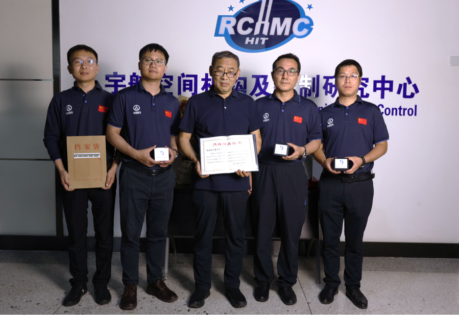 哈工大、航天五院总体设计部、北京卫星制造厂联合研究团队在国家天文台领取样品