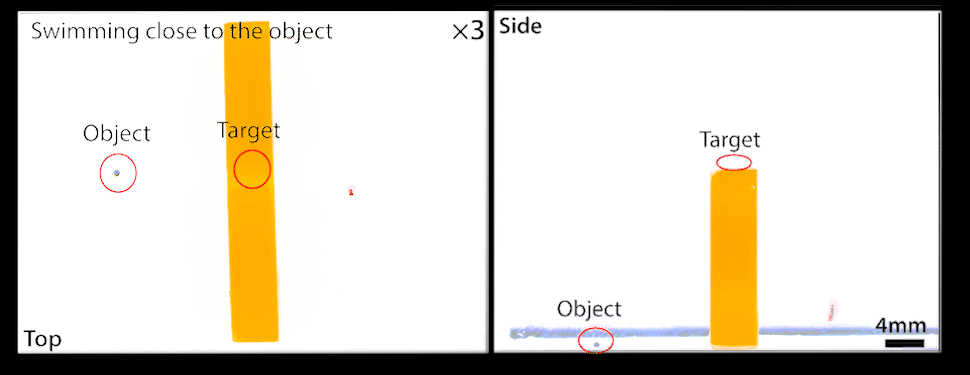 灵活的微型仿鱼磁性软机器人集群向病灶聚集并形状自适应贴附